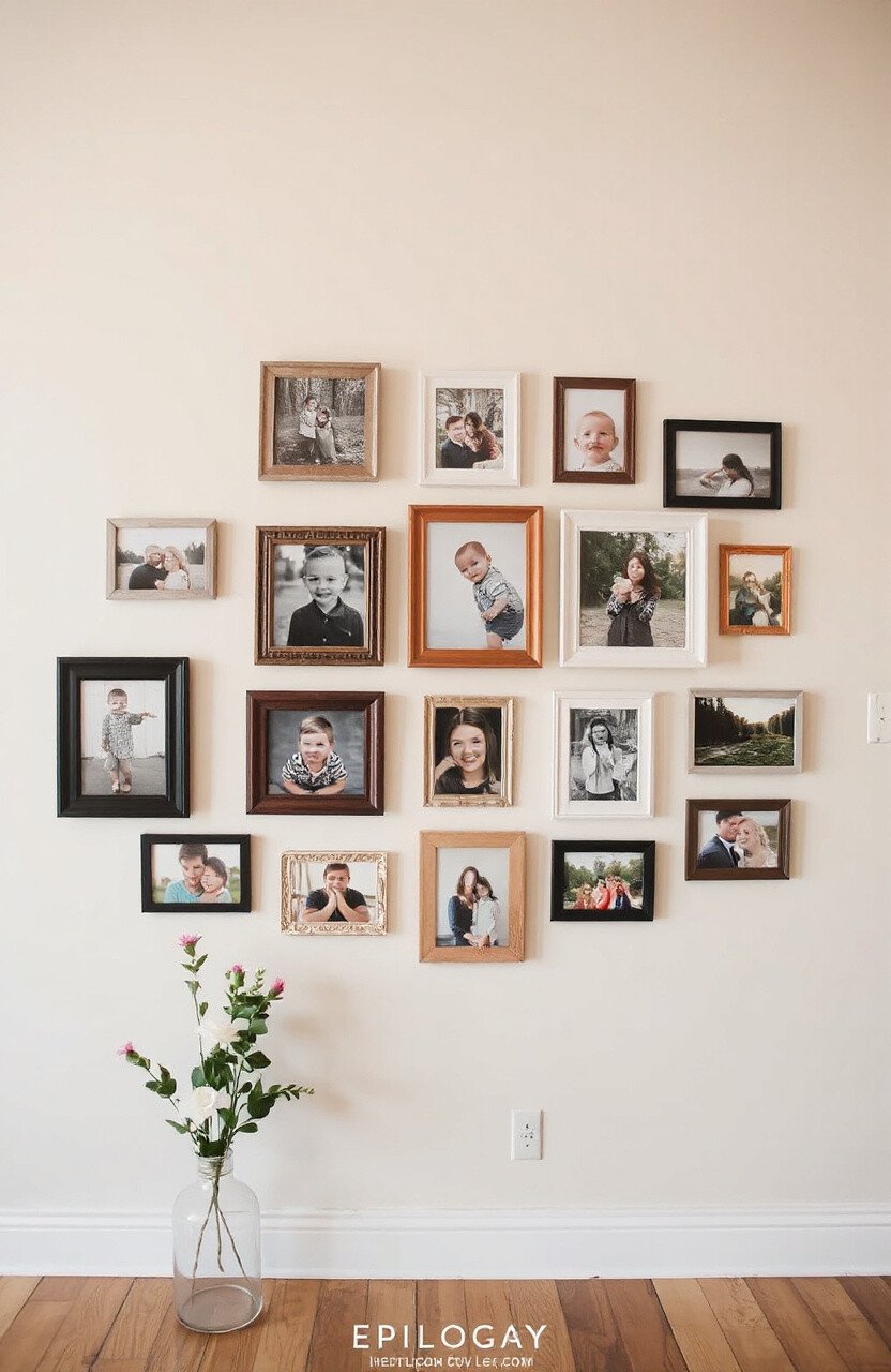 This idea brings warmth and personality to your space. It’s a unique way to keep your cherished memories alive. You can change the photos anytime to refresh the look.