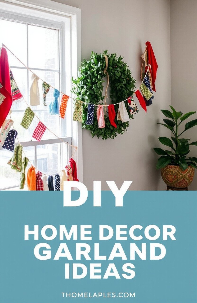 Add a festive touch to any room with a fabric garland. Use fabric scraps and string them together. Hang it over a window, fireplace, or bed for a colorful display.