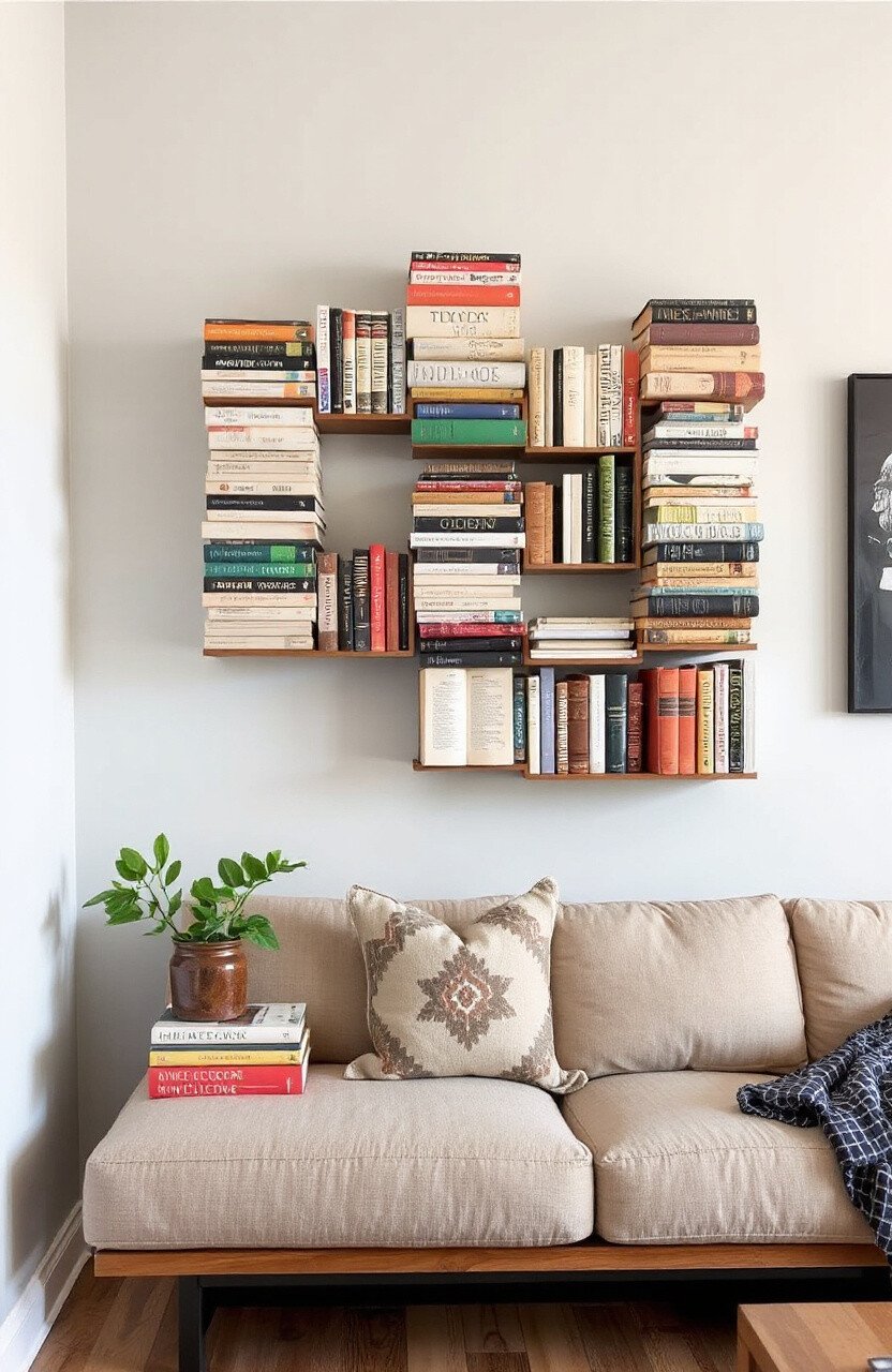 Create the illusion of books floating on your wall with hidden brackets. This minimalist design is perfect for book lovers. It saves space and looks incredibly chic.