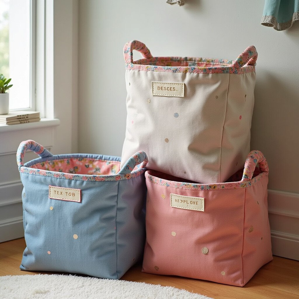 Organize your space with fabric storage bins. Sew fabric into sturdy cubes that can hold toys, clothes, or craft supplies. They’re functional and add a cozy touch to your home.