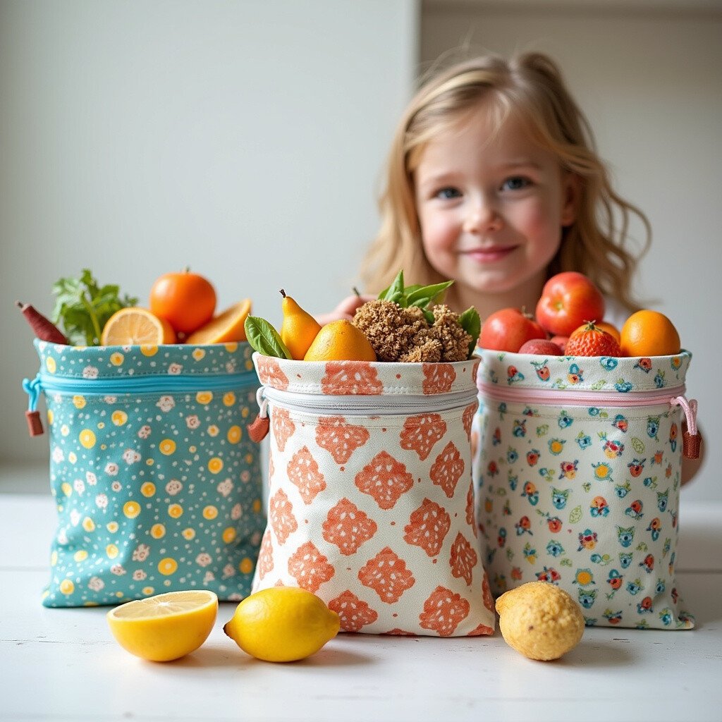 Help the environment with reusable fabric snack bags. Sew them in various sizes to fit sandwiches, fruits, or snacks. They’re a sustainable alternative to plastic bags, easy to wash, and super cute!