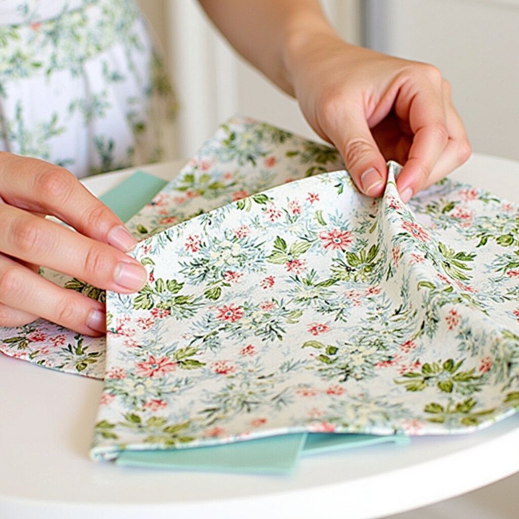 Sew your own set of fabric napkins for a touch of sophistication at mealtime. Choose elegant or fun fabrics to suit your style. These napkins are reusable, washable, and eco-friendly.