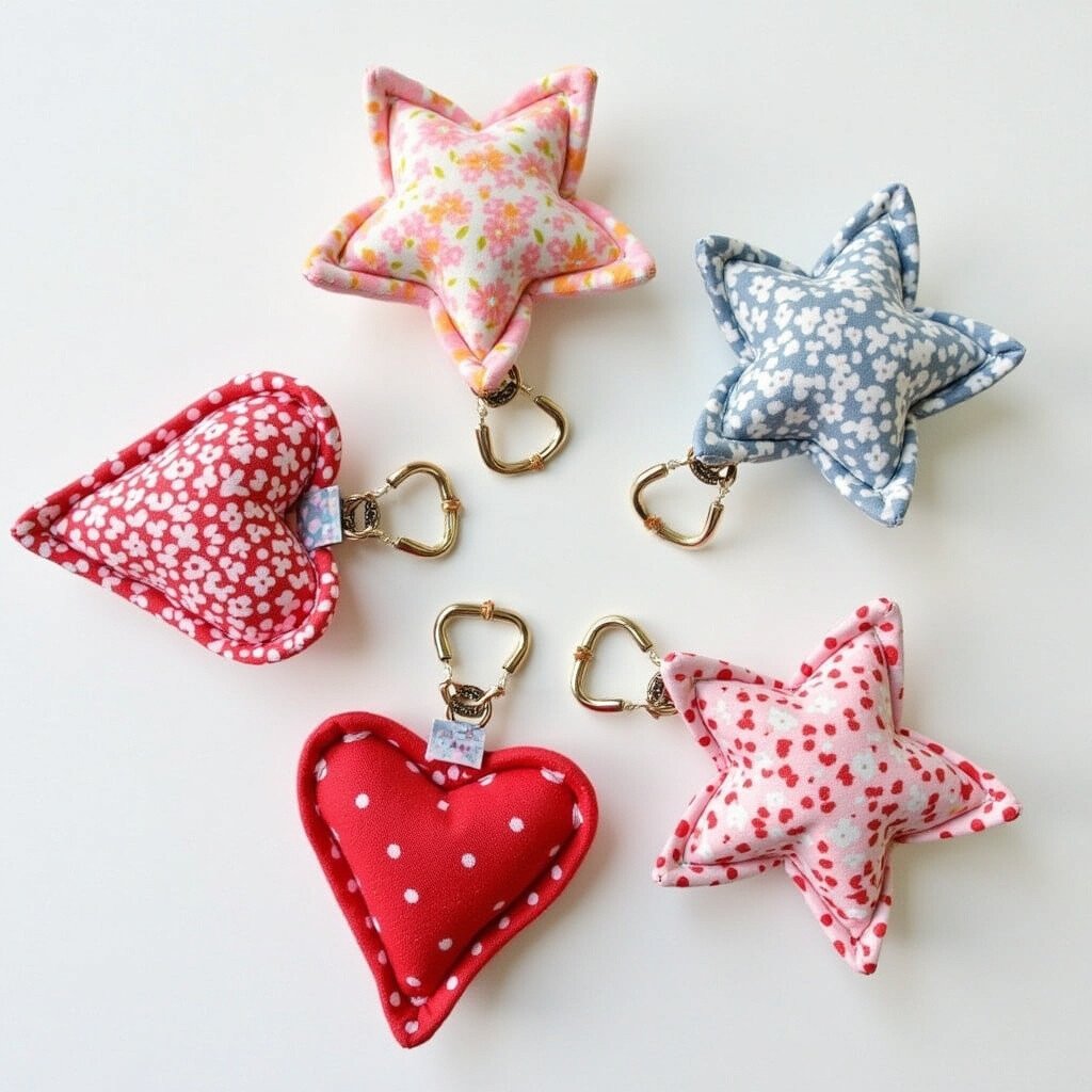 Create fabric keychains in fun shapes like hearts, stars, or animals. Fill them with stuffing, and add a keyring for a personal touch to your keys. They’re cute and practical, helping you keep track of your keys in style.