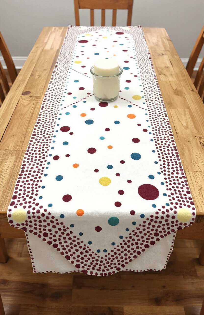Dot painting table runners is a simple way to add elegance. They can be customized for any occasion. Elevate your meals with handmade charm.
