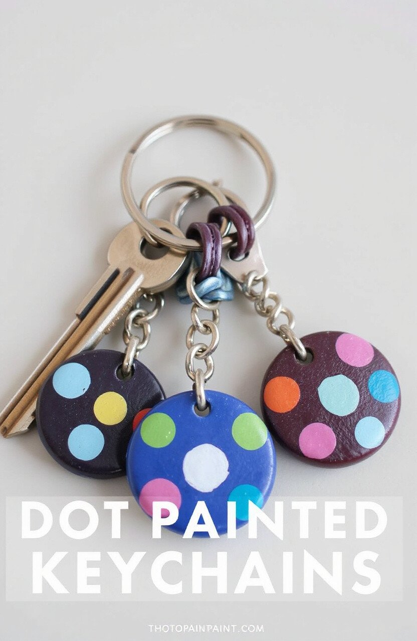 Keep your keys stylishly organized with a dot-painted keychain. These make for personalized and practical accessories. Use colors that make your heart happy.