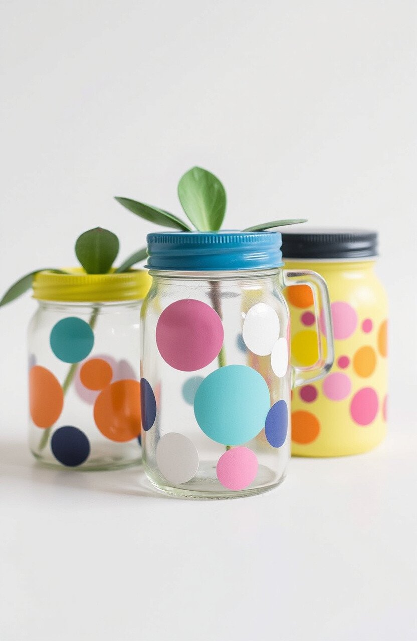 Store your treasures in dot-painted jars. These are perfect for organizing and decorating. Use colors that bring joy to your space.
