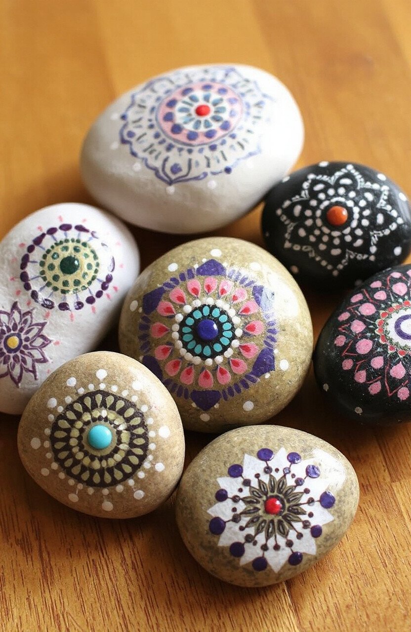 Mandala stones are small, round rocks adorned with intricate dot patterns. They’re perfect for bringing a peaceful vibe to any space. Use them as paperweights or simple decor pieces. Personalize them with your favorite colors.