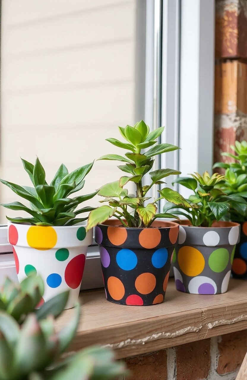 Turn ordinary plant pots into extraordinary art pieces with dot painting. Brighten up your garden or windowsill with colorful designs. Use contrasting colors for a bold statement.