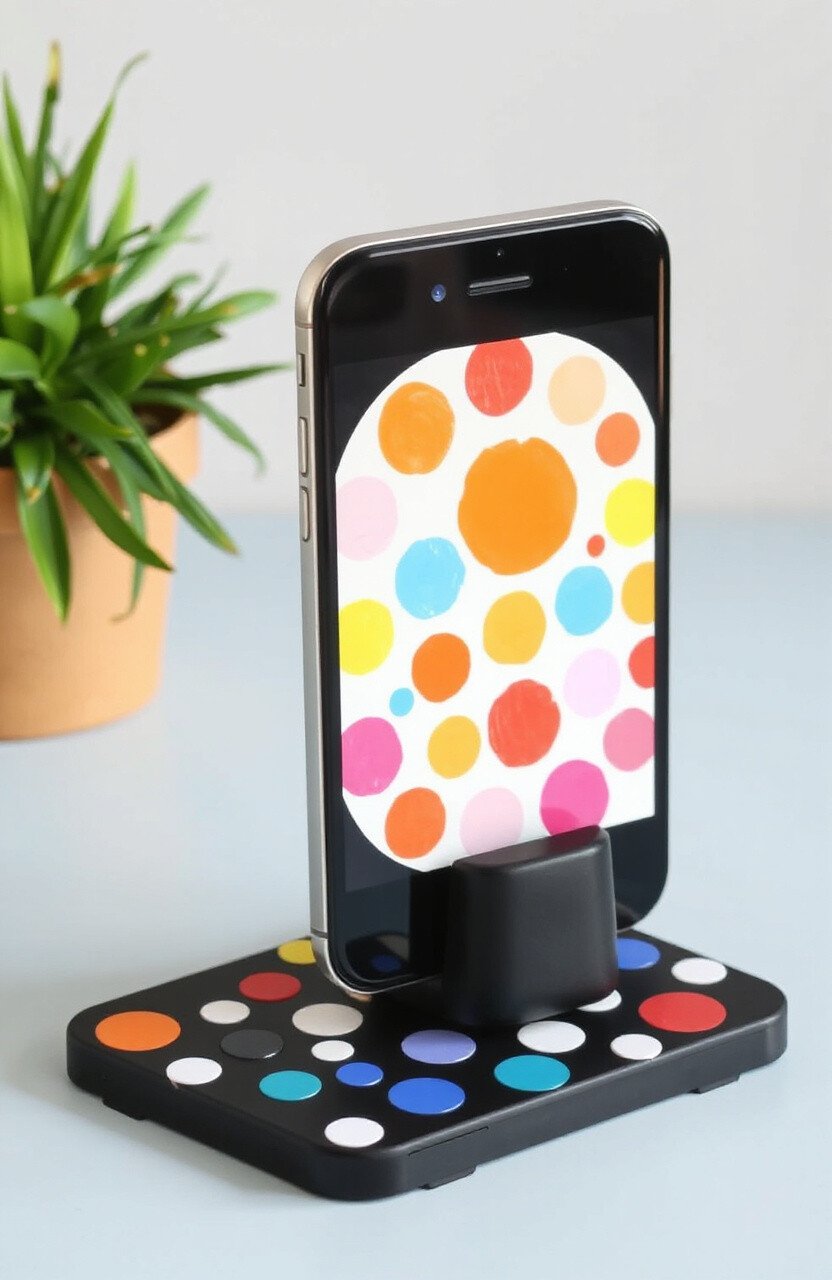 Dot-painted phone holders are practical and pretty. They’re a fun project for tech lovers. Your phone will have the best seat in the house.