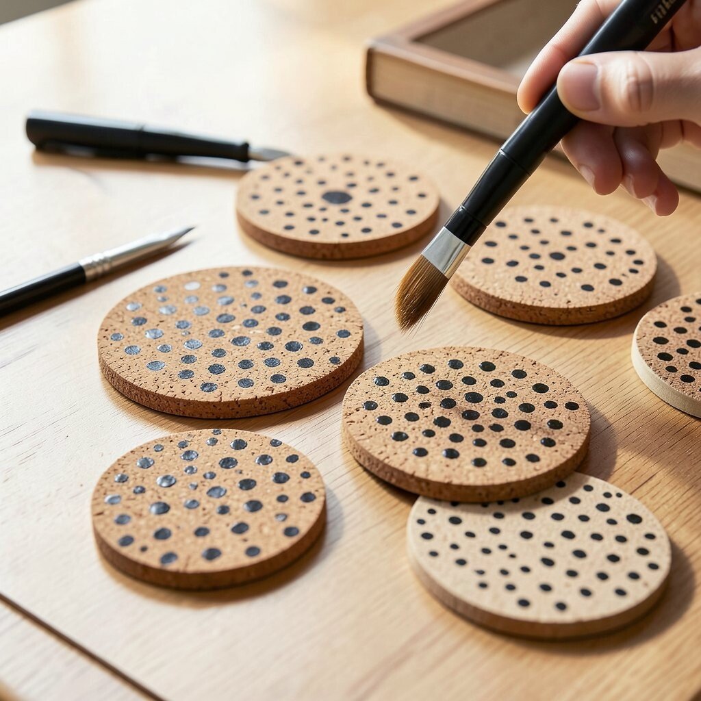 Protect your furniture with stylish dot-painted coasters. Use dotting tools on cork or wooden coasters to create unique designs. They make great gifts too!