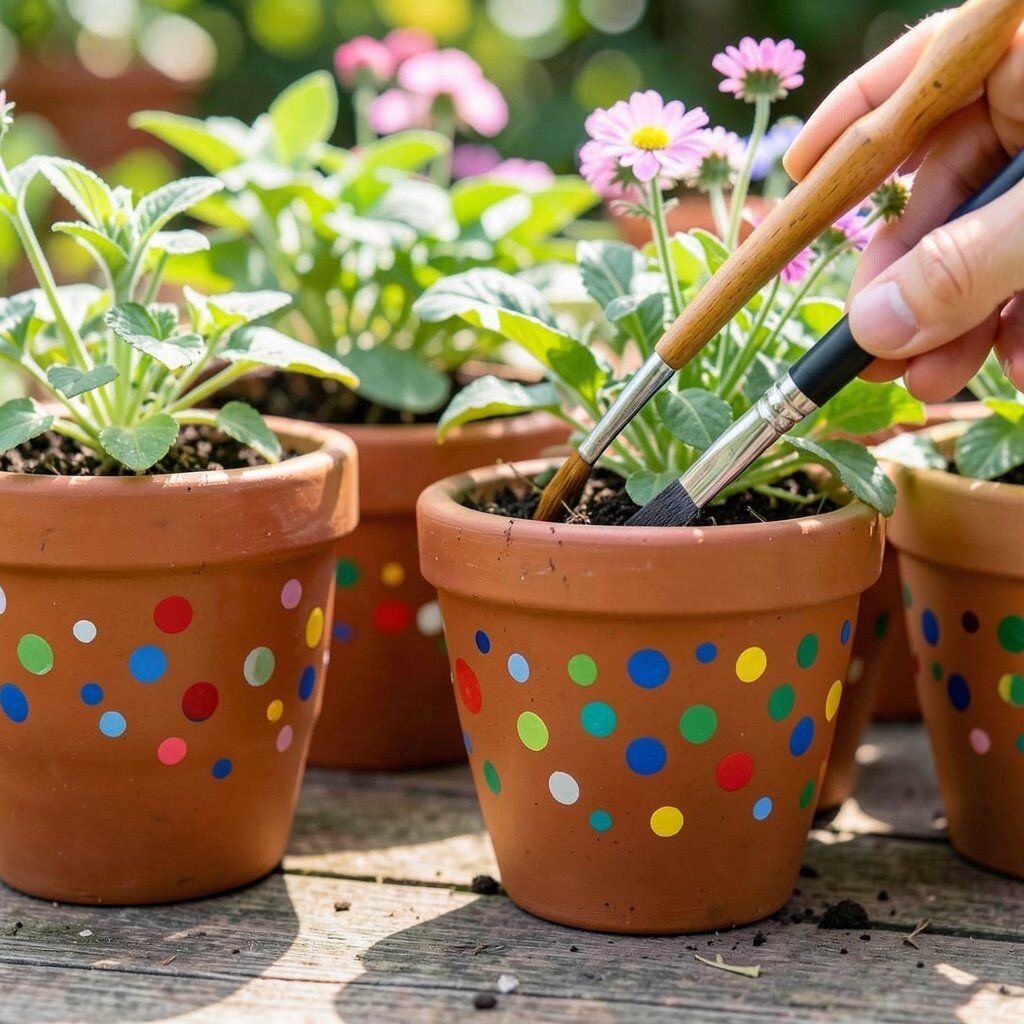 Use bright colors to make the dots pop, or go for earth tones for a more natural look. It’s a fun weekend project that can refresh your garden’s look without breaking the bank.