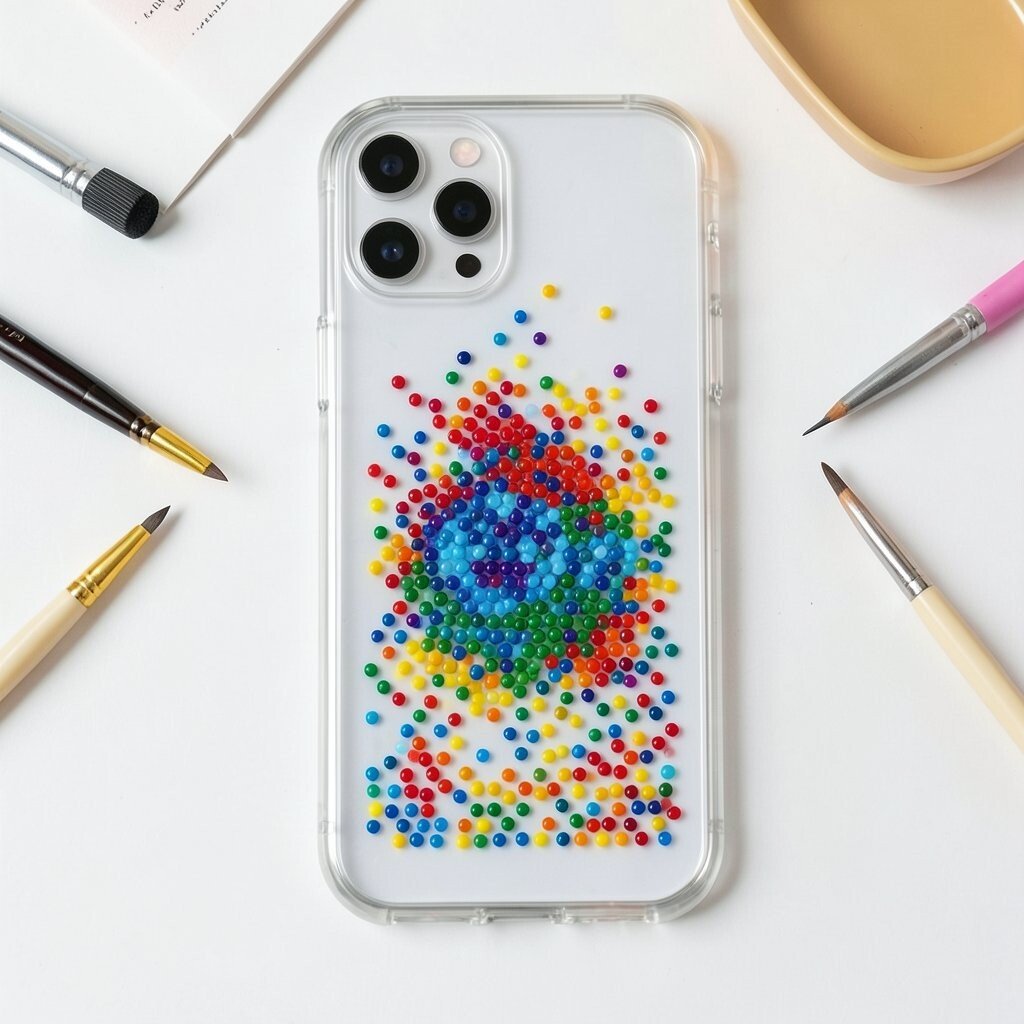 Personalize your phone case with dot art. Use a clear or plain case and dotting tools to create a design that’s all your own. It’s a trendy way to show off your style.