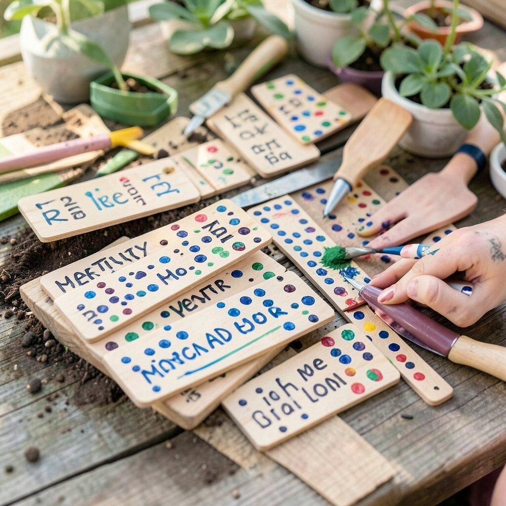 Make your garden more organized with dot-painted plant labels. Use dotting tools to add names or patterns to wooden or plastic labels. They’re both functional and decorative.