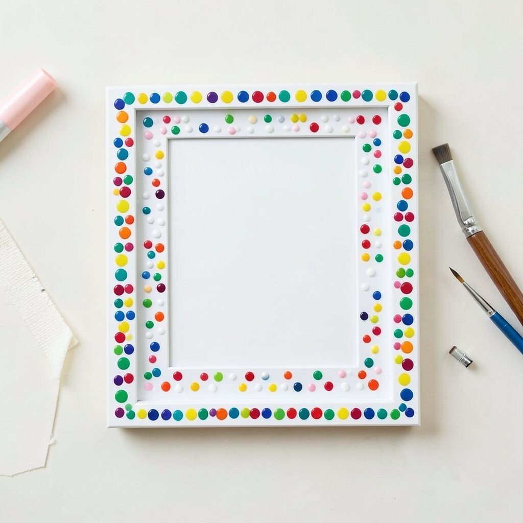 Give your picture frames a fresh look with dots. Use dotting tools to add a border of colorful dots around the frame. It’s an easy way to update your home decor.