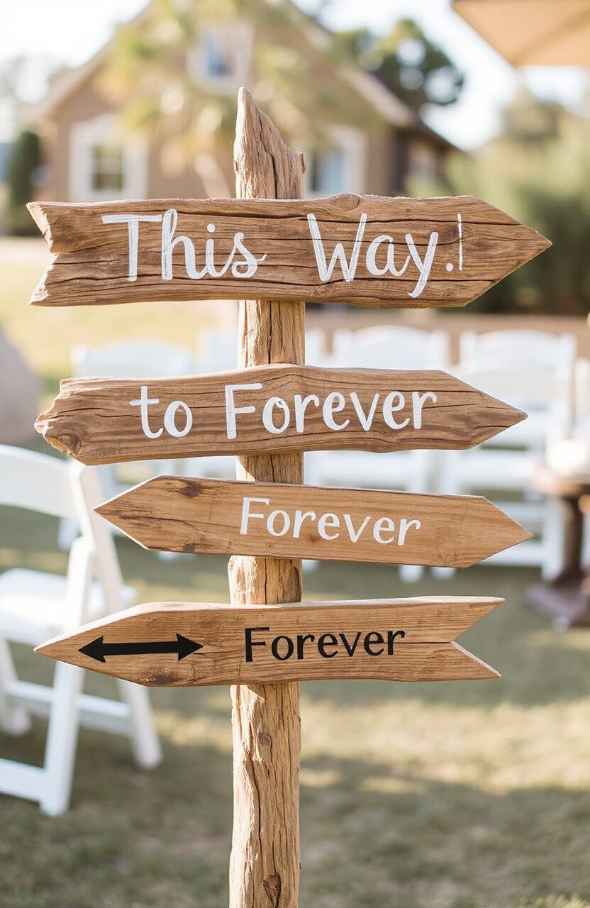 Personalize the arrows with cute messages like “This Way to Forever” or simply point out the main attractions of your venue. It’s a memorable touch that guests will talk about long after the event.