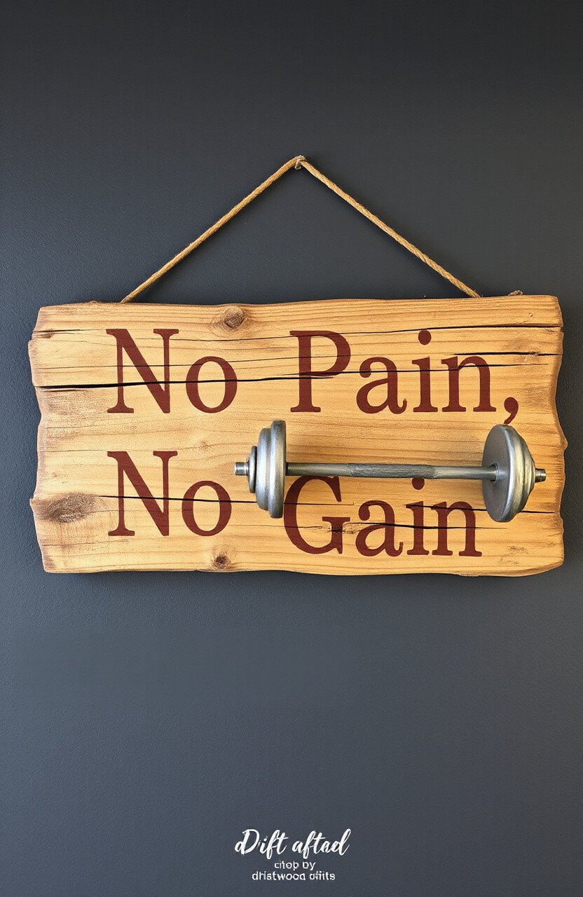 Stay motivated with a driftwood fitness sign in your workout area. Use encouraging phrases like “No Pain, No Gain” to push through tough workouts.