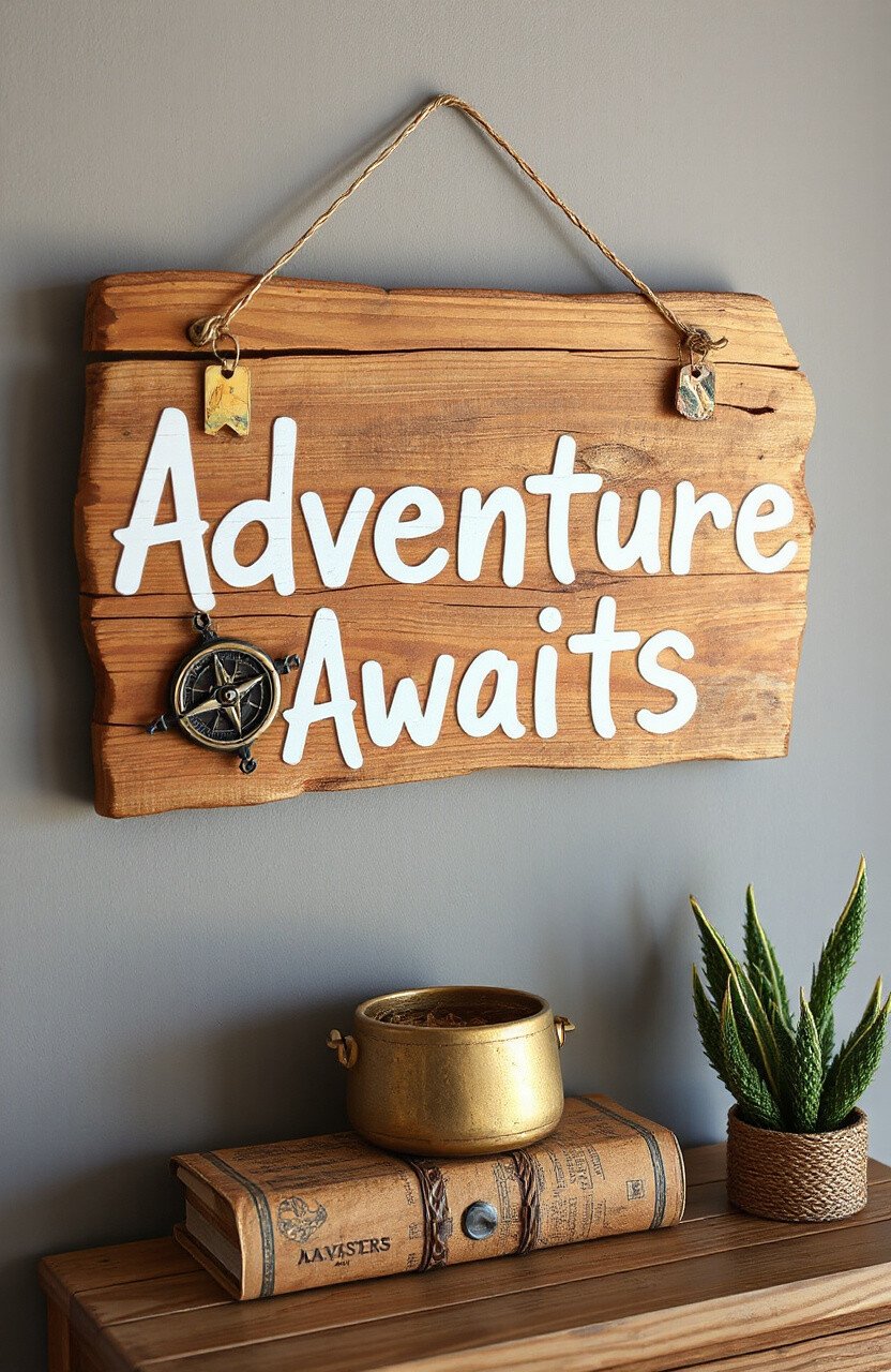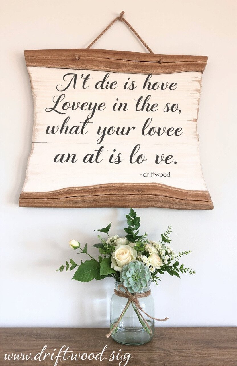Who doesn’t love a good quote to start the day? A driftwood sign adorned with your favorite inspirational saying can set the tone for your home. Choose words that uplift and encourage, painted in elegant script.