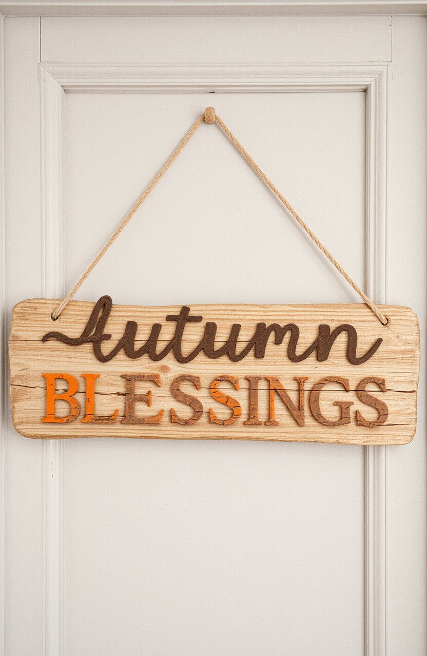 Celebrate the bounty of fall with a driftwood harvest sign. Words like “Harvest Time” or “Autumn Blessings” bring the season indoors.