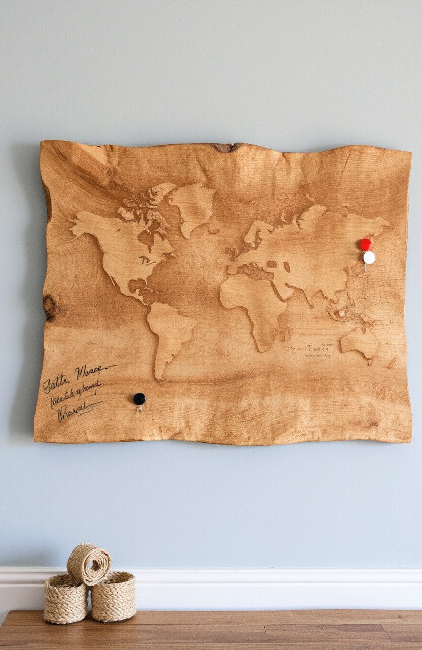 For those who love to wander, a travel-themed driftwood map sign is perfect. Use it to mark places you’ve been or dream destinations.