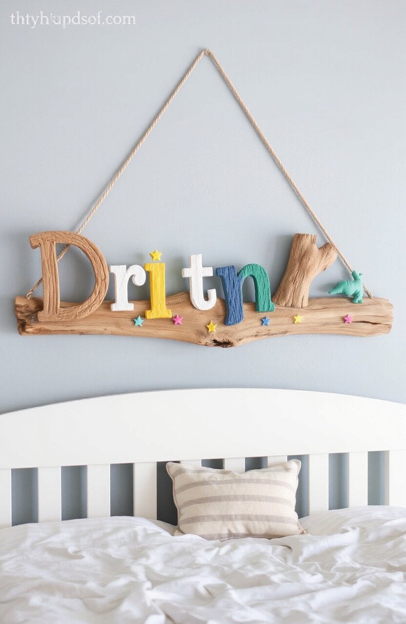 Make your child’s room extra special with a driftwood name sign. Choose driftwood pieces that match the theme of their room, be it pirates or fairies.