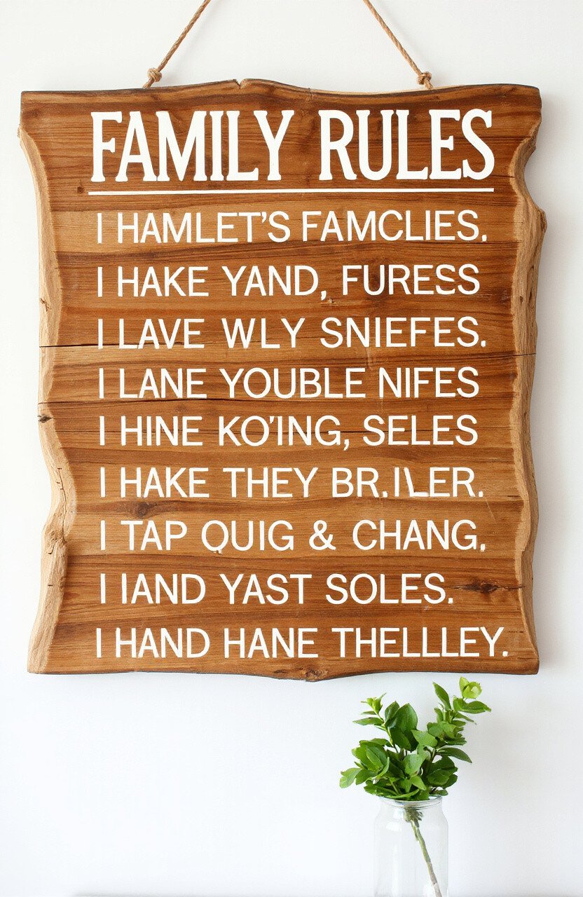 Choose a large piece of driftwood and write the rules in bold letters. This sign not only adds character to your home but also serves as a loving reminder of what matters most.