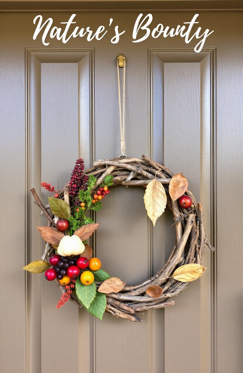 Celebrate the abundance of nature with a Nature’s Bounty wreath. Use driftwood and natural elements like berries and small fruits.