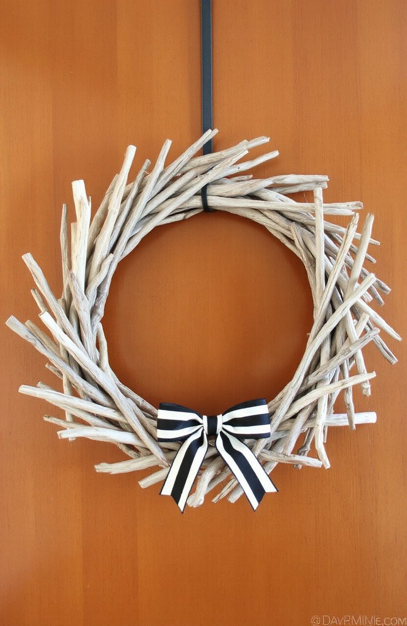 Its simplicity highlights the natural beauty of the wood, making it an eye-catching piece. Add a small, monochrome bow if you desire a subtle accent. This wreath is not only chic but also incredibly easy to make.