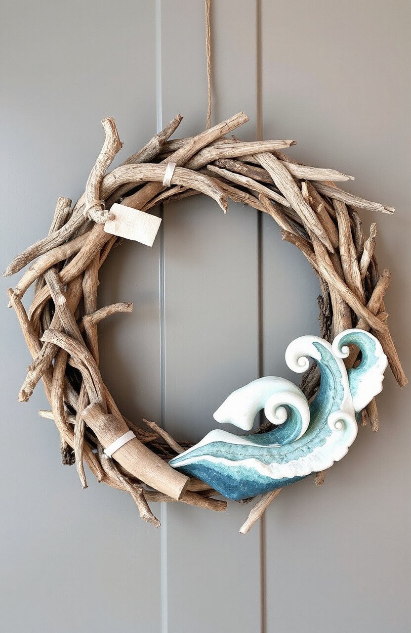 Capture the movement of the sea with an Ocean Waves wreath. Use driftwood and wave-inspired elements like swirls and curls.