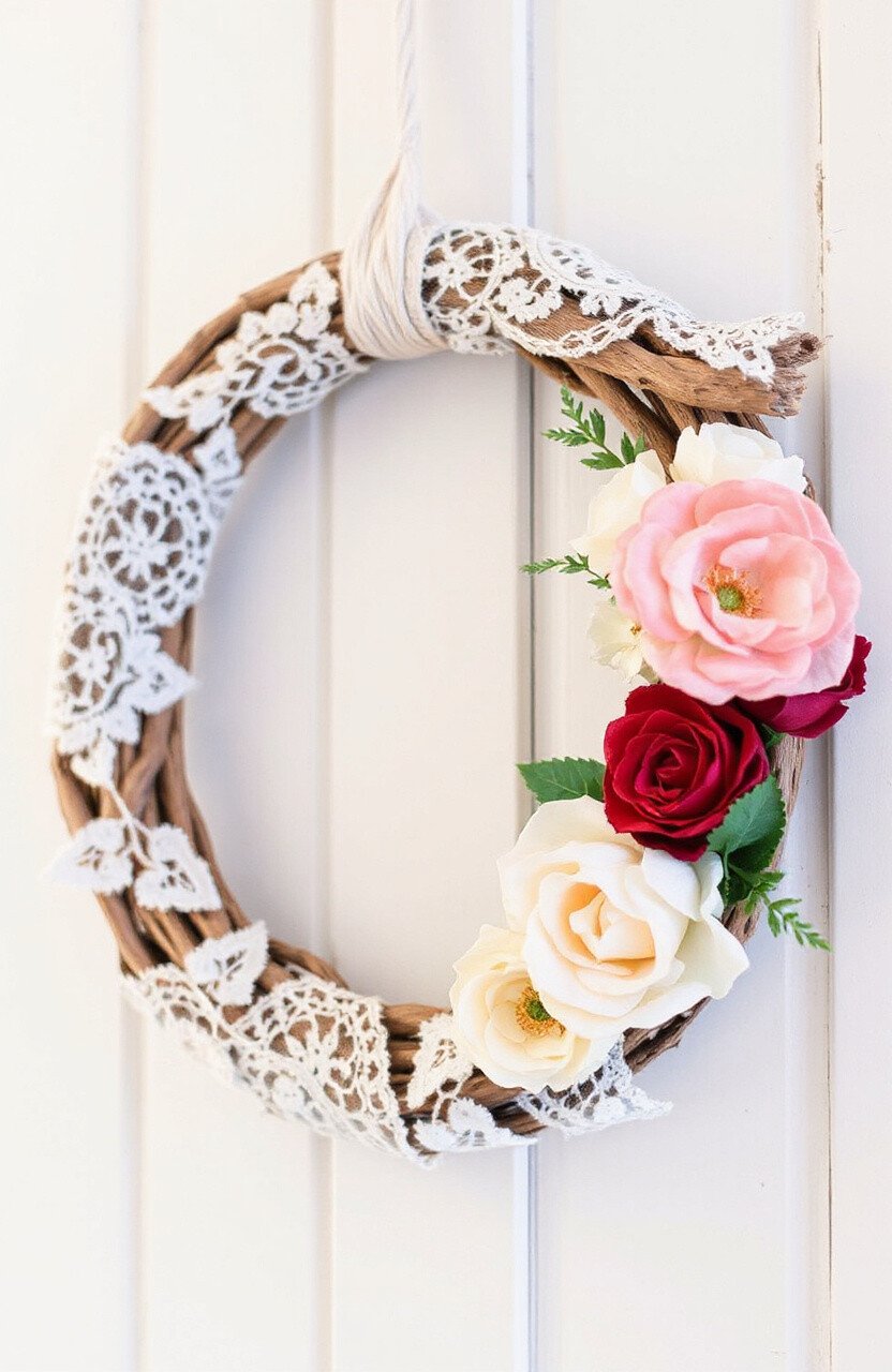 The soft textures and delicate details create a look that is both enchanting and nostalgic. Choose pastel colors for a gentle effect or deep reds for a more dramatic look. This wreath is a lovely way to add a touch of romance to any room.