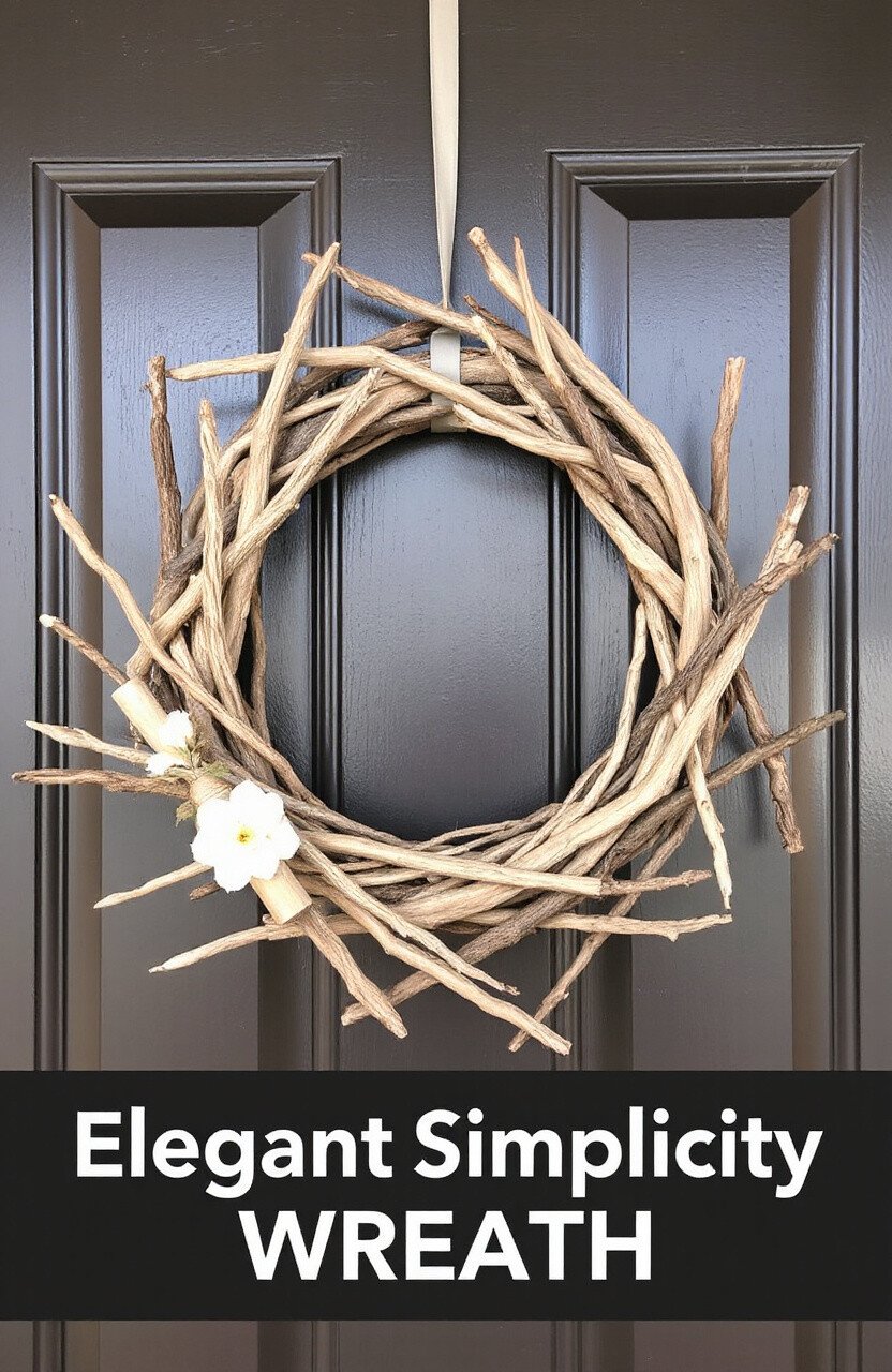For those who love simplicity, a Minimalist Delight wreath focuses on clean lines and understated beauty. Using slender, uniform pieces of driftwood, this wreath is perfect for modern homes.