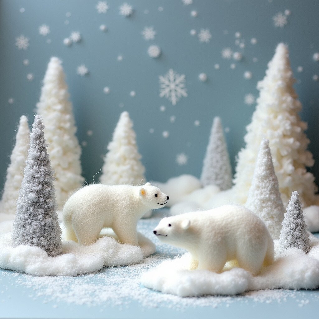 Craft a snowy landscape with felted snow, trees, and animals. This project is perfect for capturing the magic of winter. The white and silver hues create a sparkling effect.