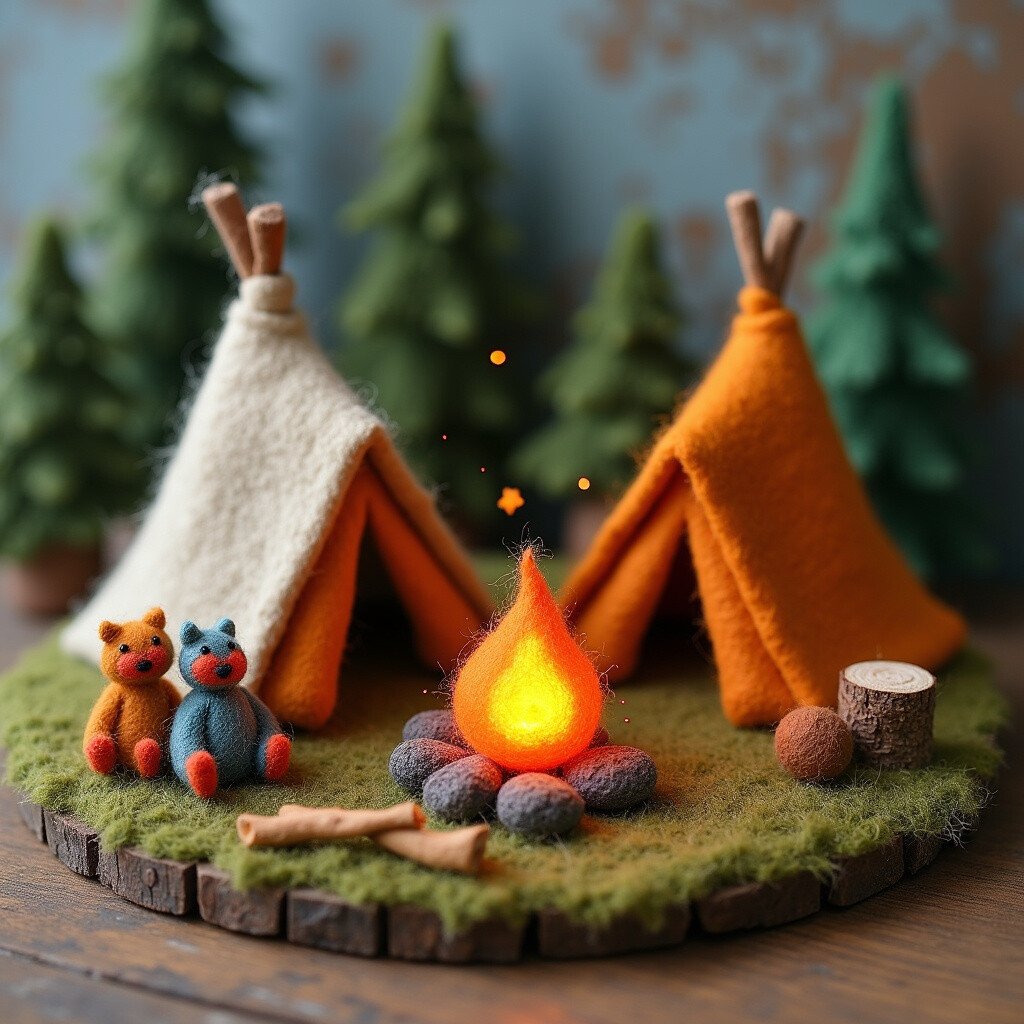 Craft a cozy campsite scene with felted tents and a campfire. This project is perfect for those who love the great outdoors. The warm colors and inviting details create a welcoming atmosphere.