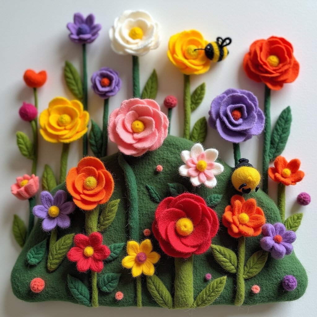 Create a garden bursting with felted flowers and plants. This project is ideal for those who love the vibrant colors of spring. The diverse shapes and hues make it an eye-catching display.