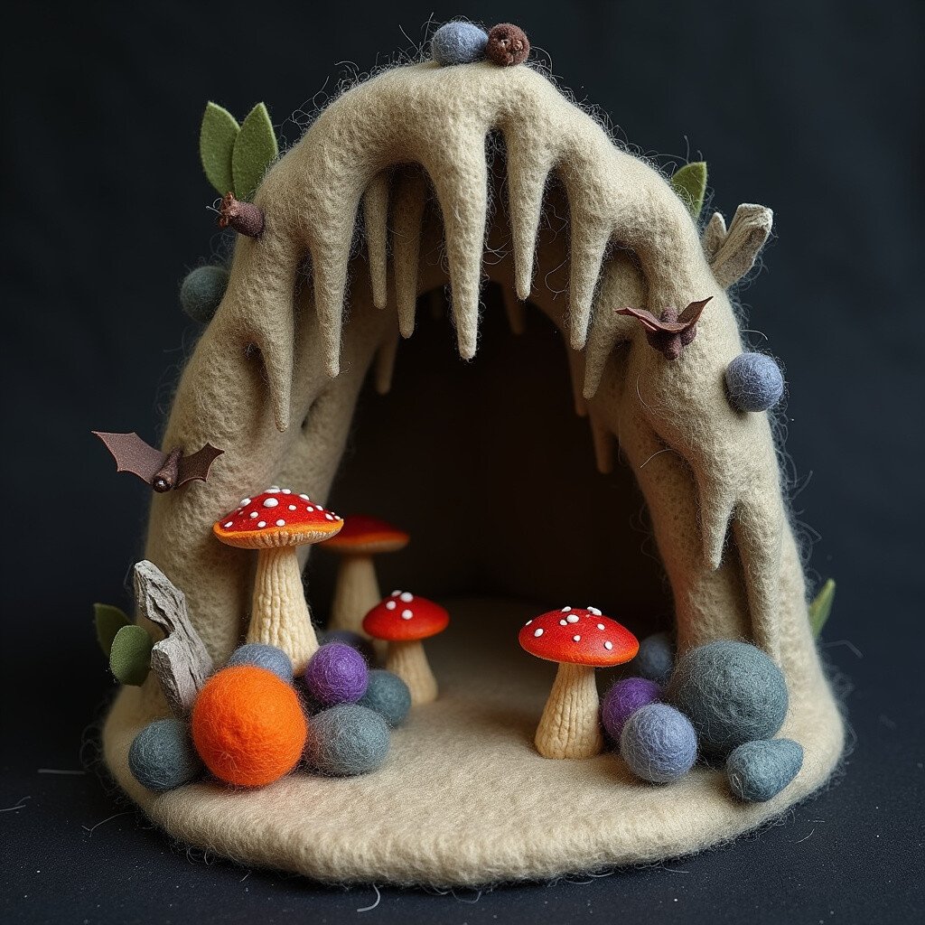 Craft a mysterious cave with felted stalactites and creatures. This project is great for adding an element of wonder to your decor. The shadows and textures create an intriguing atmosphere.