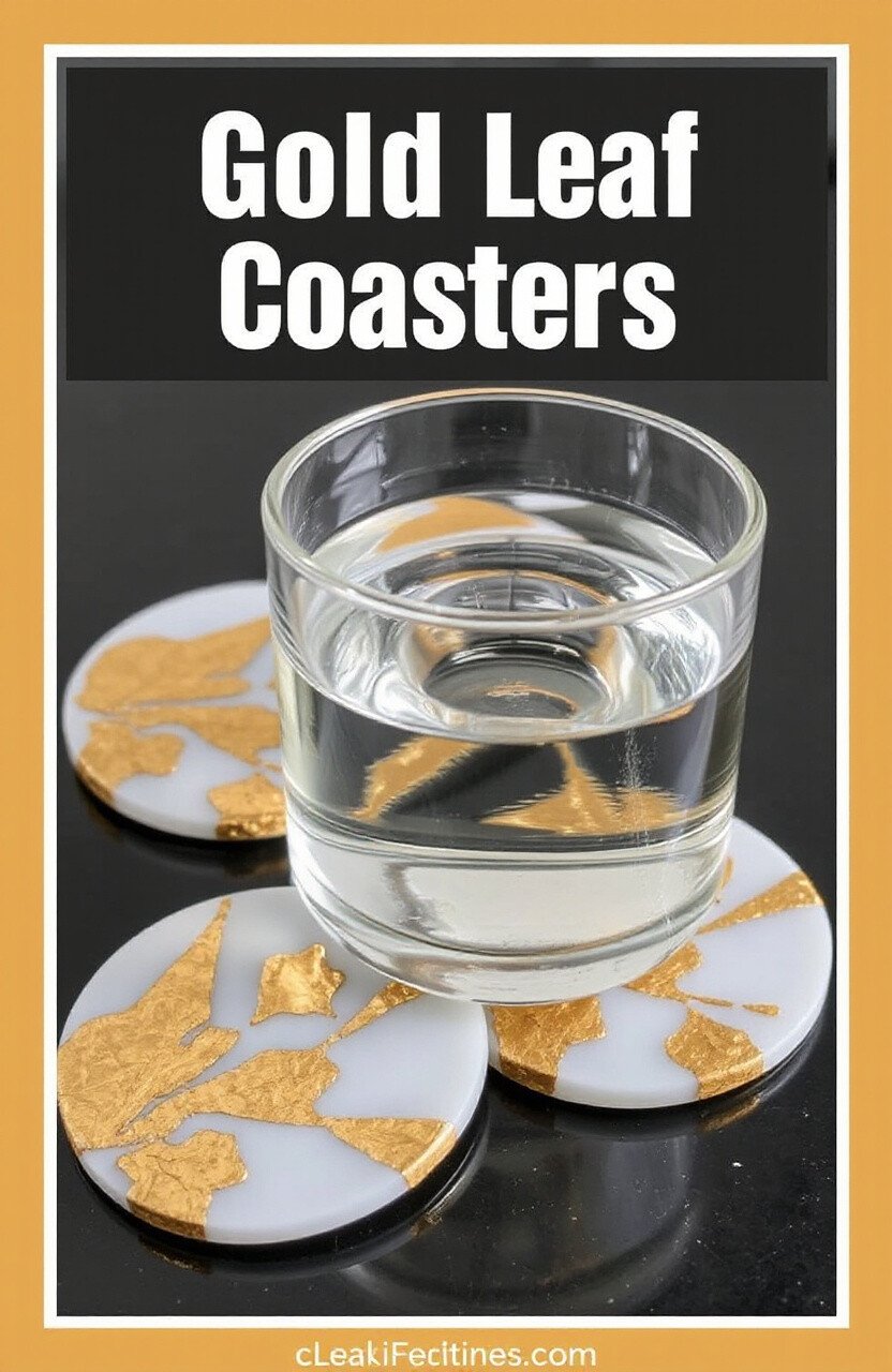 Add a touch of opulence with gold leaf coasters. Simply layer gold leaf between layers of clear epoxy for a rich, luxurious finish.