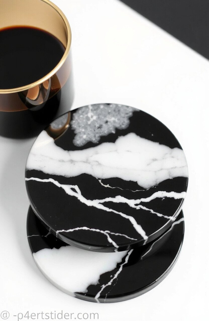 Keep it simple yet stylish with minimalist black and white coasters. Use geometric patterns for a modern touch.