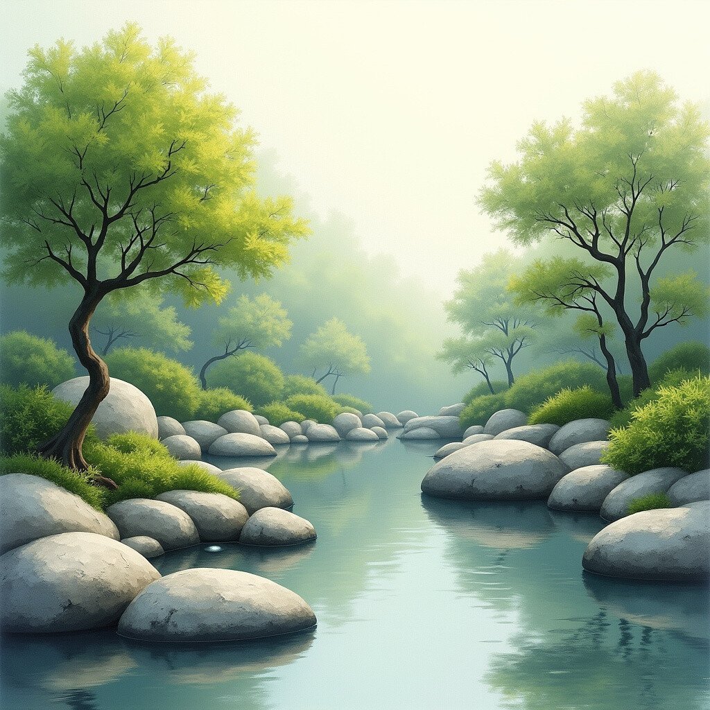 Use flowing lines and soft colors. This landscape is perfect for those who appreciate the gentle flow of water.