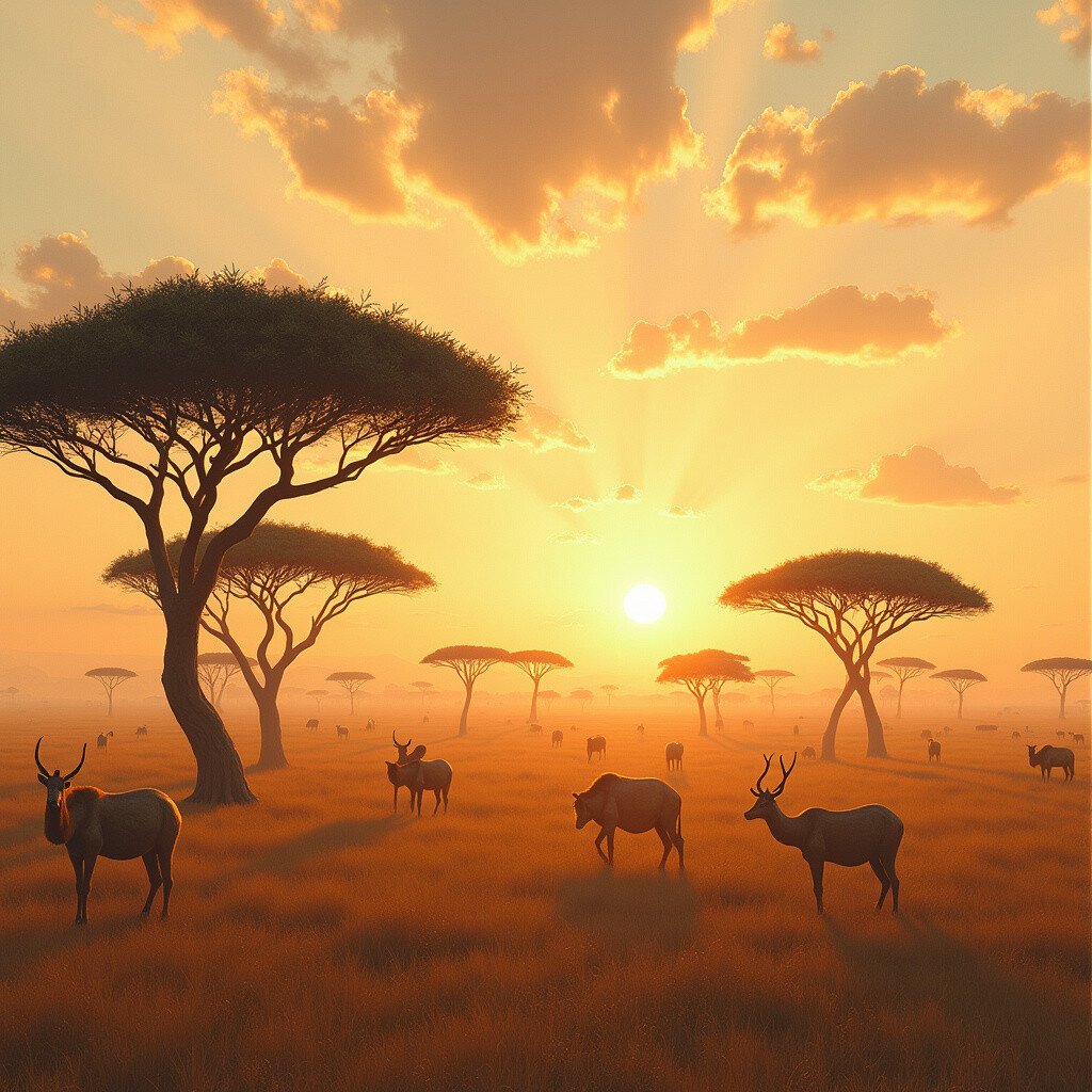 Vast savannas dotted with acacia trees and wildlife. Safari vistas are full of adventure and wonder.