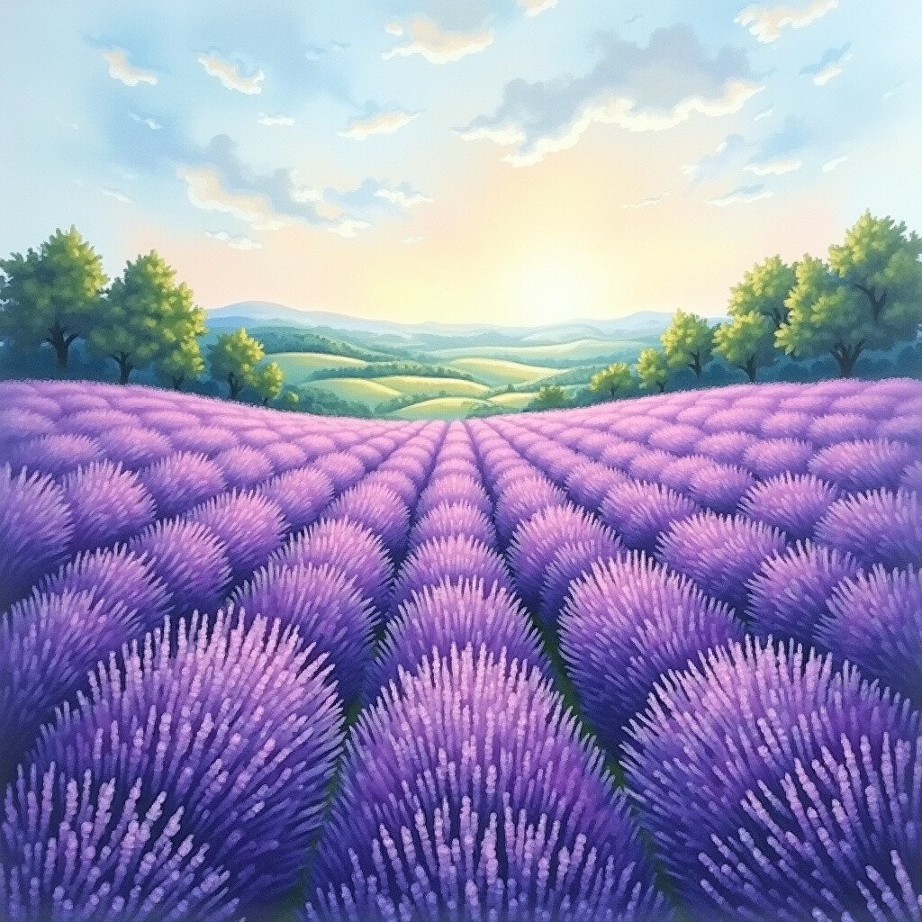 Vast fields of lavender stretching to the horizon create a sea of purple. The scent and color are soothing and refreshing.