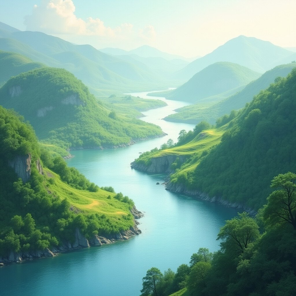 Rivers winding through lush valleys create a peaceful scene. River valleys are places of gentle beauty.