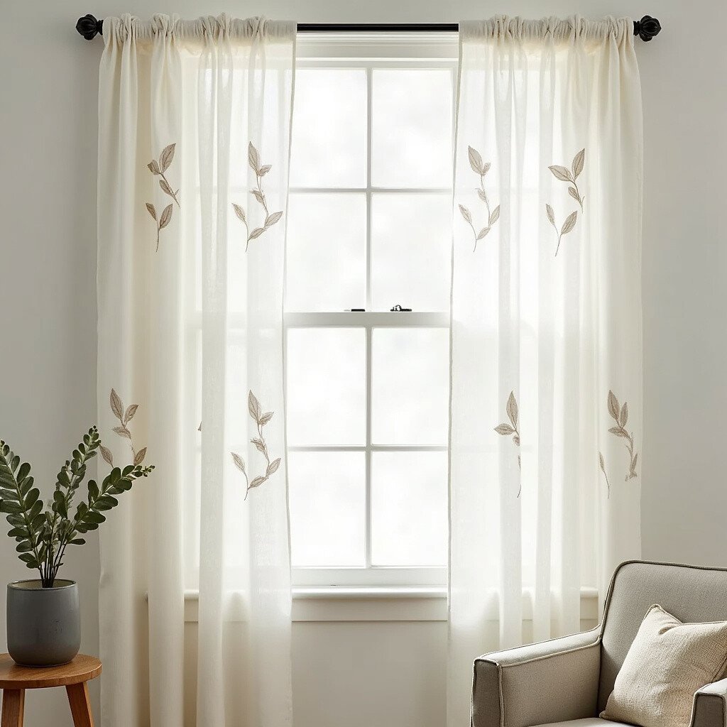Choose sheer panels with embroidered leaves for a subtle nod to nature. They let in light while adding texture.