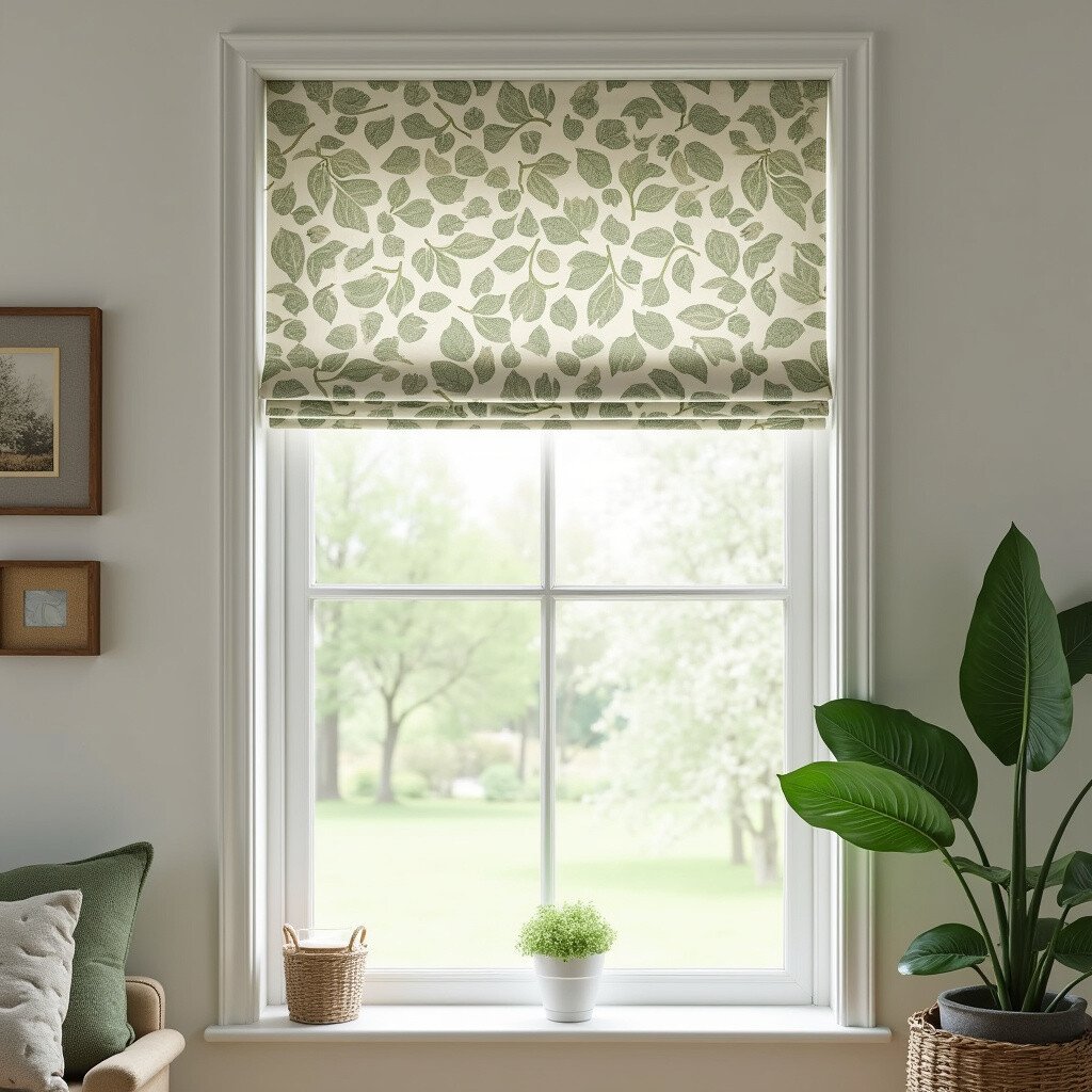 Opt for blinds with a leaf pattern for a subtle yet stylish touch. They provide privacy while enhancing the decor.