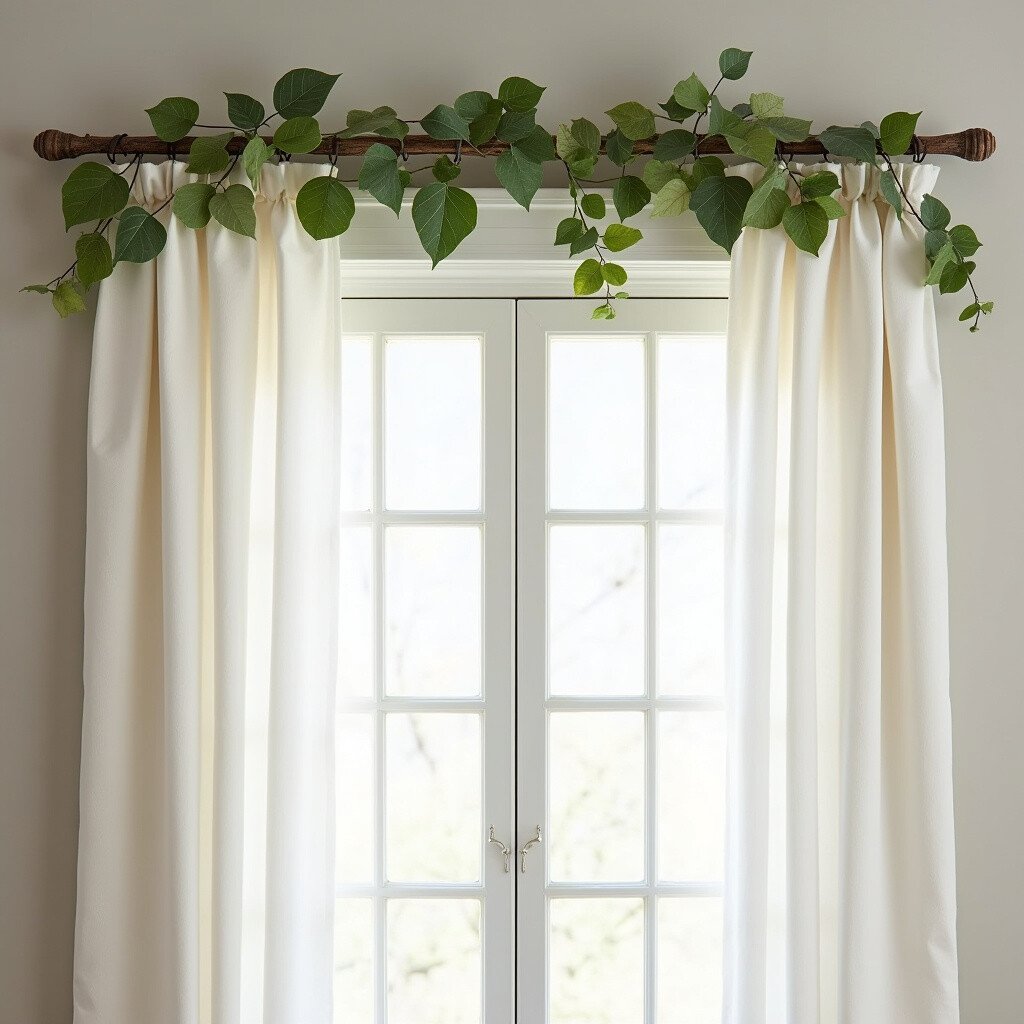 Swap out your standard curtain rod for a branch adorned with leaves. It’s a rustic, nature-inspired solution.