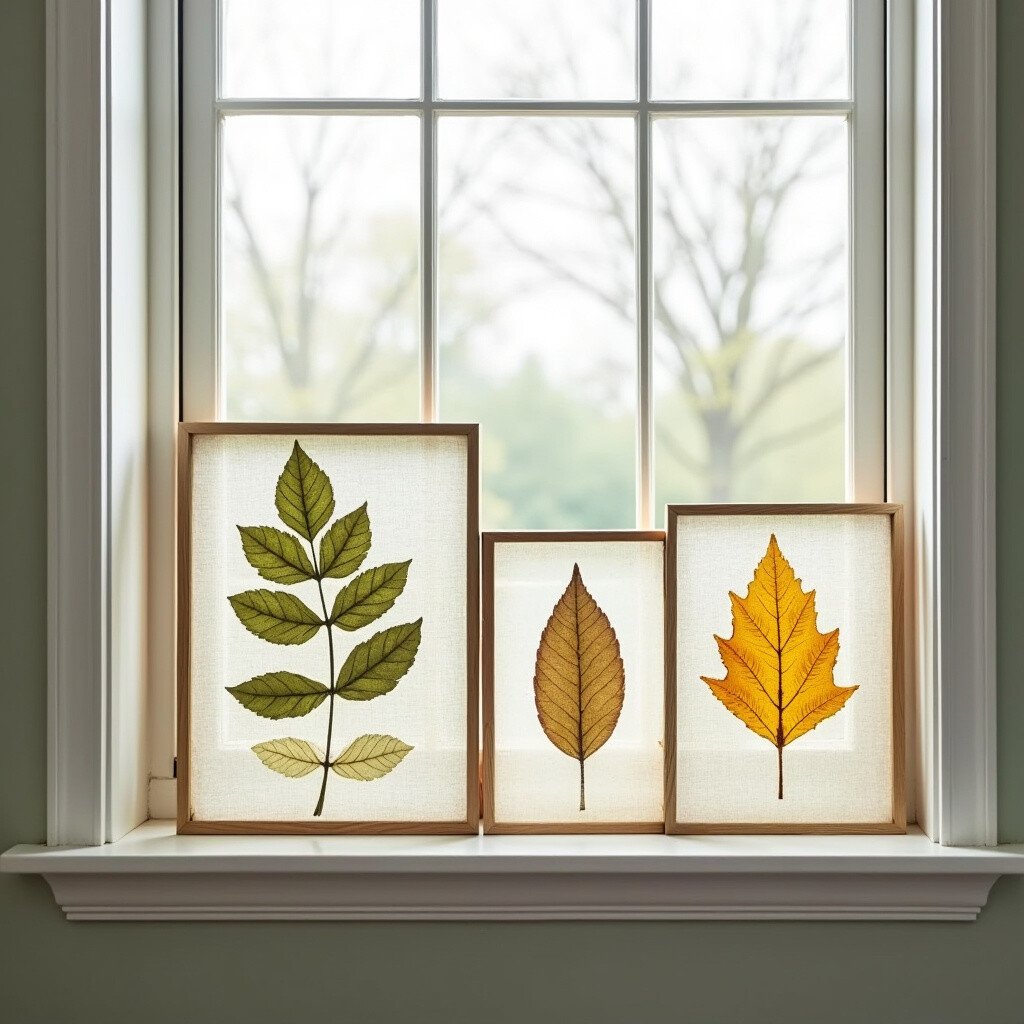 Display pressed leaves in shadow boxes on your window sill. It’s a beautiful way to showcase nature’s artistry.