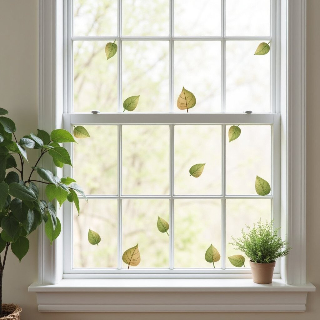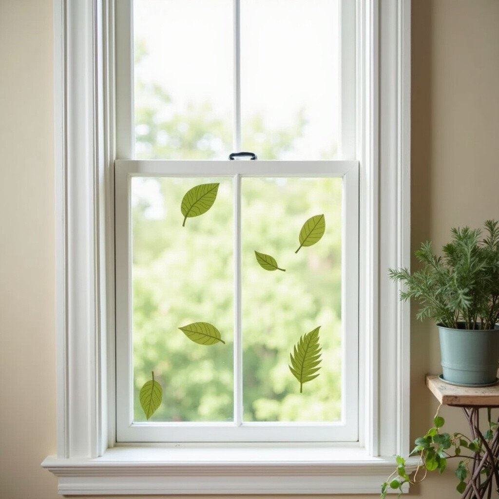 Use window clings in leaf shapes for a playful and temporary decor solution. They add a whimsical touch.