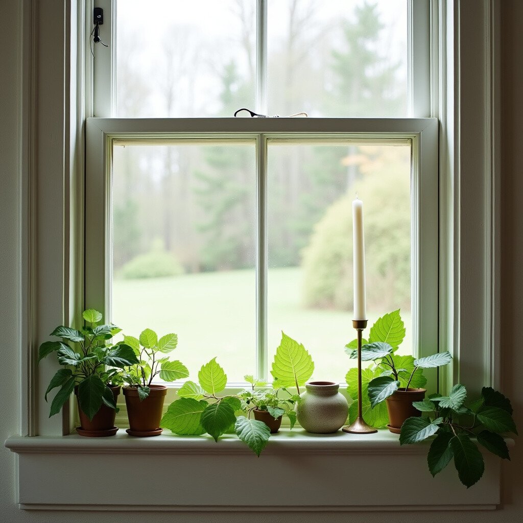 5. Leafy Window Sill Arrangement