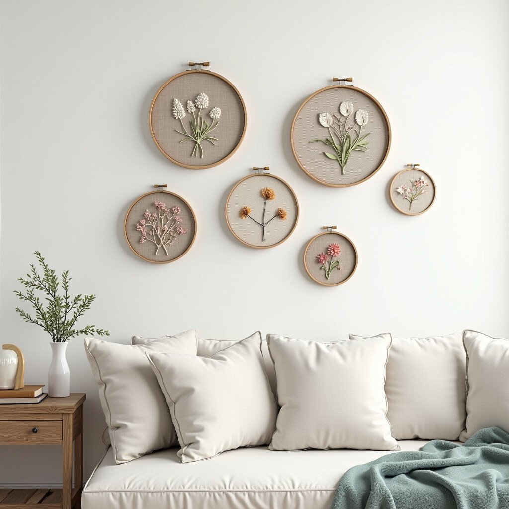 These hoops can be arranged in groups for a dynamic display. They’re budget-friendly and easy to personalize with your own designs. Look for unique fabrics or patterns that reflect your style.