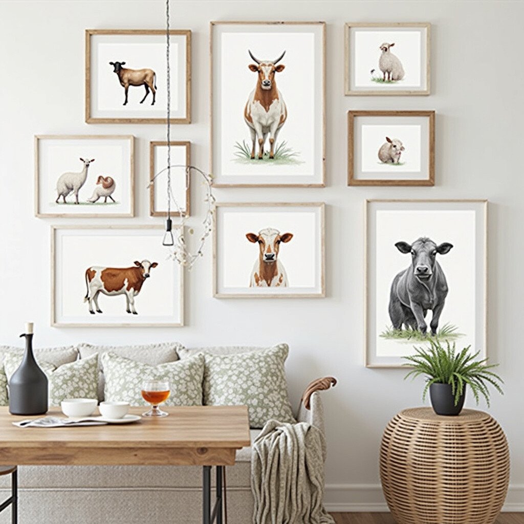 Farm animal prints are a charming addition to any farmhouse-style home. They bring a whimsical touch and can be a great conversation starter. Choose from cows, chickens, sheep, or any animal that you love.