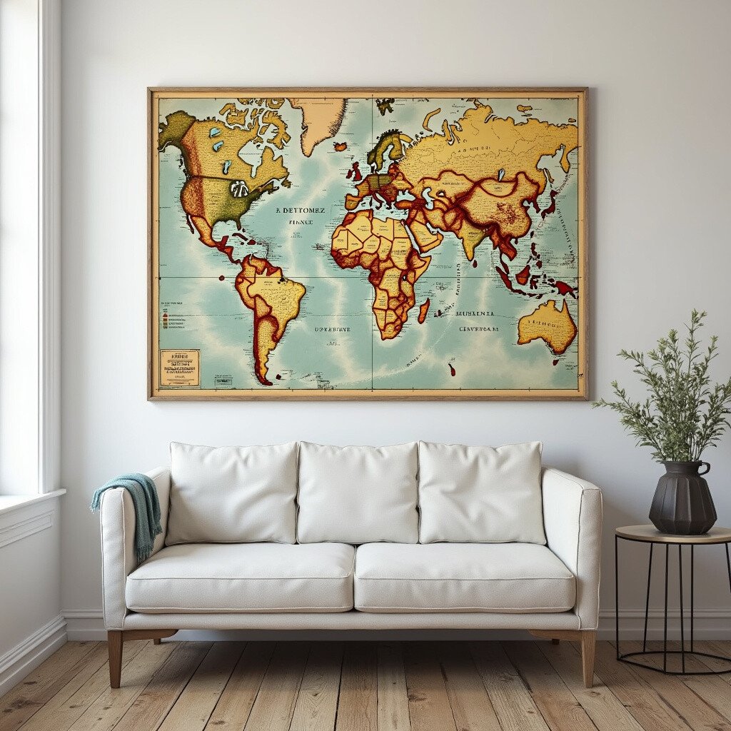 Vintage maps bring a sense of history and adventure to your walls. They’re perfect for sparking curiosity and adding a classic touch. You can find maps of your hometown, favorite travel spots, or historical locations.