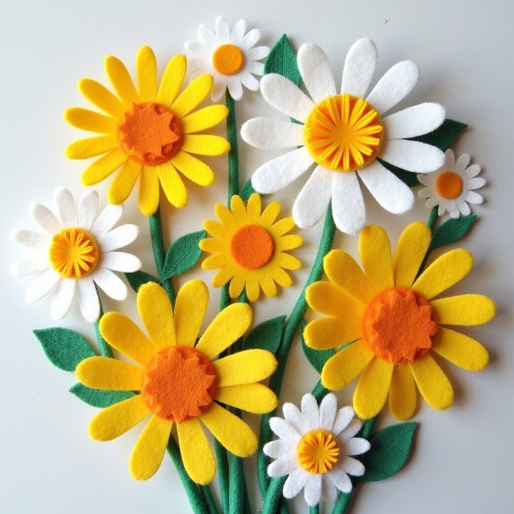 Sunflowers are the epitome of happiness. Their bright yellow petals and large blooms make them stand out. Felt sunflowers are like having sunshine indoors all year round.